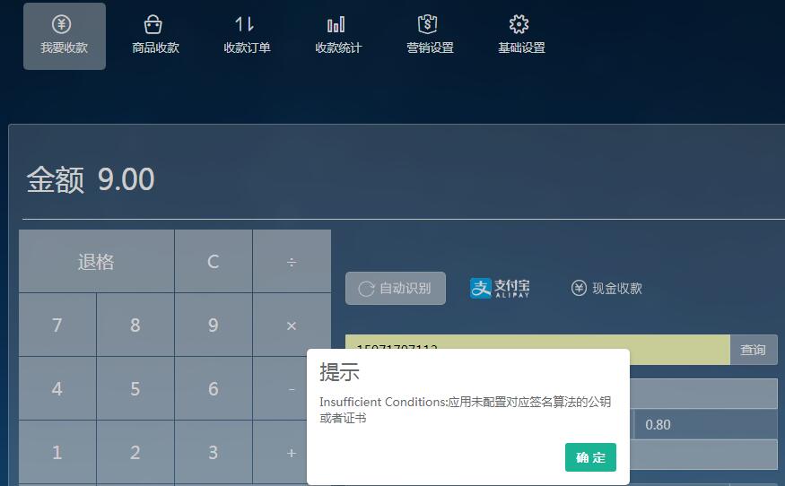 人人商城收银台被很多商家使用,但最近很多人在使用的时候只支持微信支付不支持支付宝支付,不管怎么设置,支付的时候都提示: