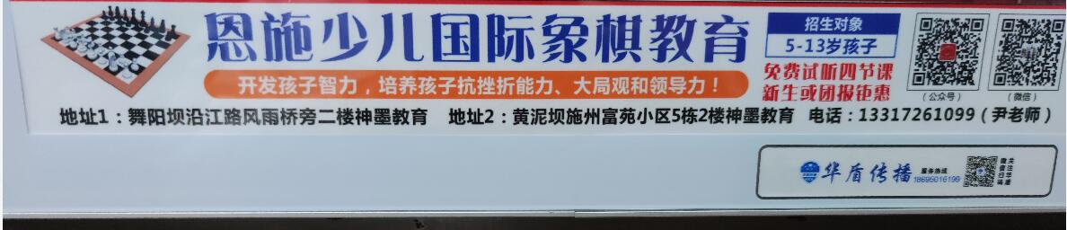 恩施少儿国际象棋教育招收5到13岁孩子,免费试听四节课,新生或团报钜惠。恩施少儿象棋教育地址1:舞阳坝沿江路风雨桥旁二楼神墨教育 地址2:黄泥坝施州富苑小区5楼2楼神墨教育