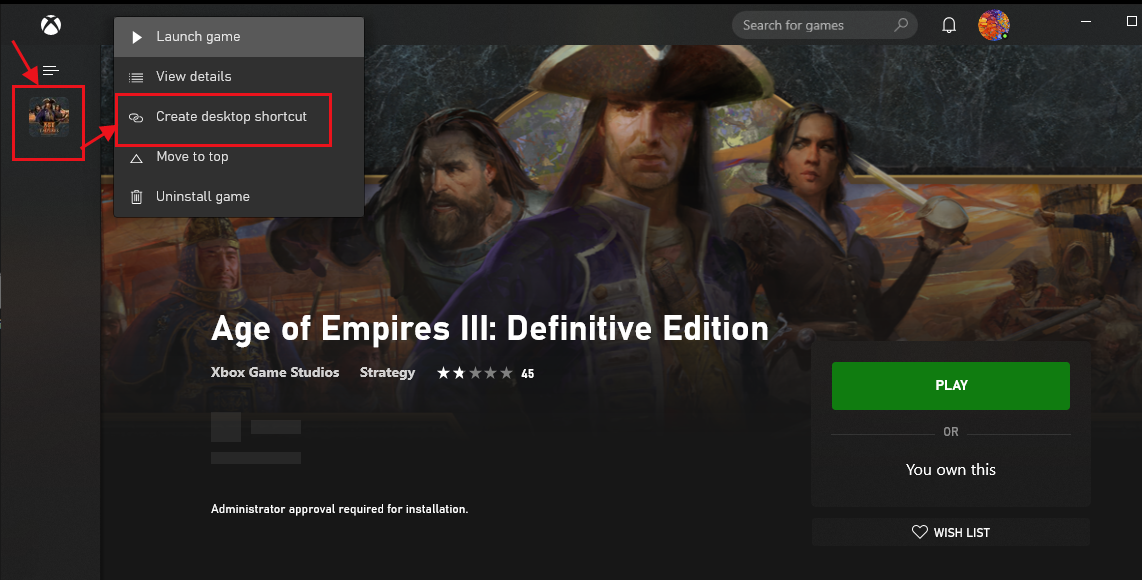 打开xbox找到游戏 点名建,创建桌面快捷方式