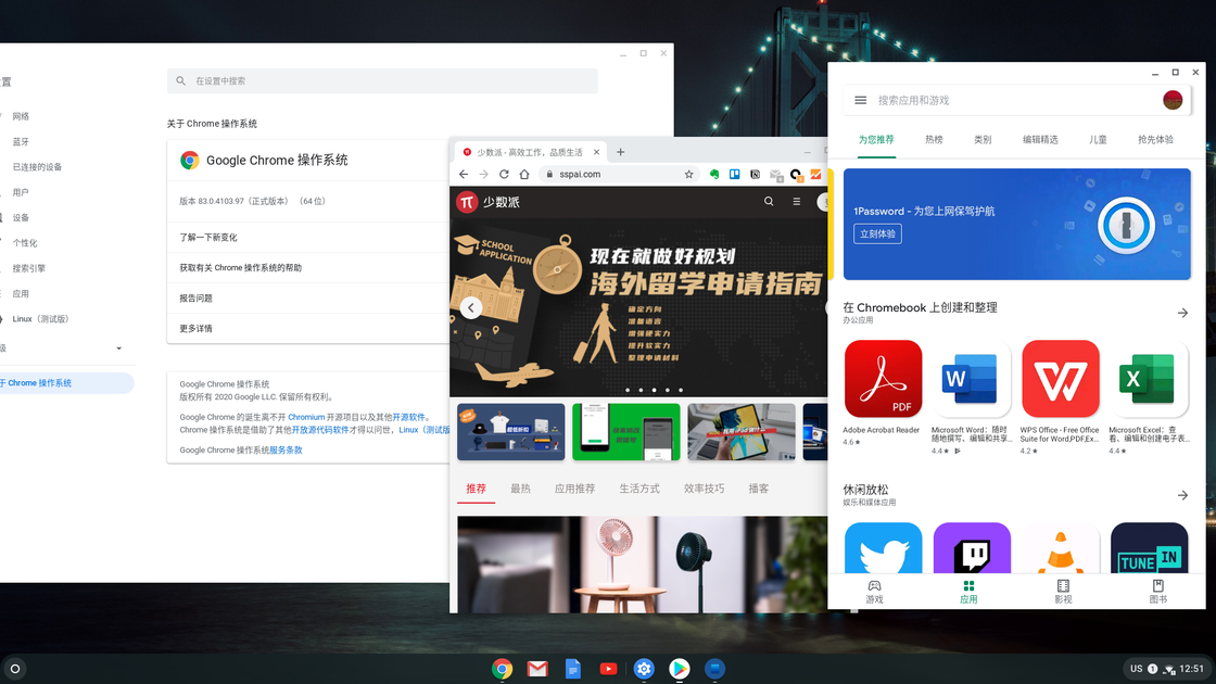 至于 Android 部分则需要进行激活内置的 Google Play Store 应用商店,在系统设置中打开应用,根据步骤完成就会出现,其中应用部分会根据你的系统处理器架构自动匹配好适合 Chrome OS 的 Android 应用,这样就避免出现不必要的应用兼容性问题。
