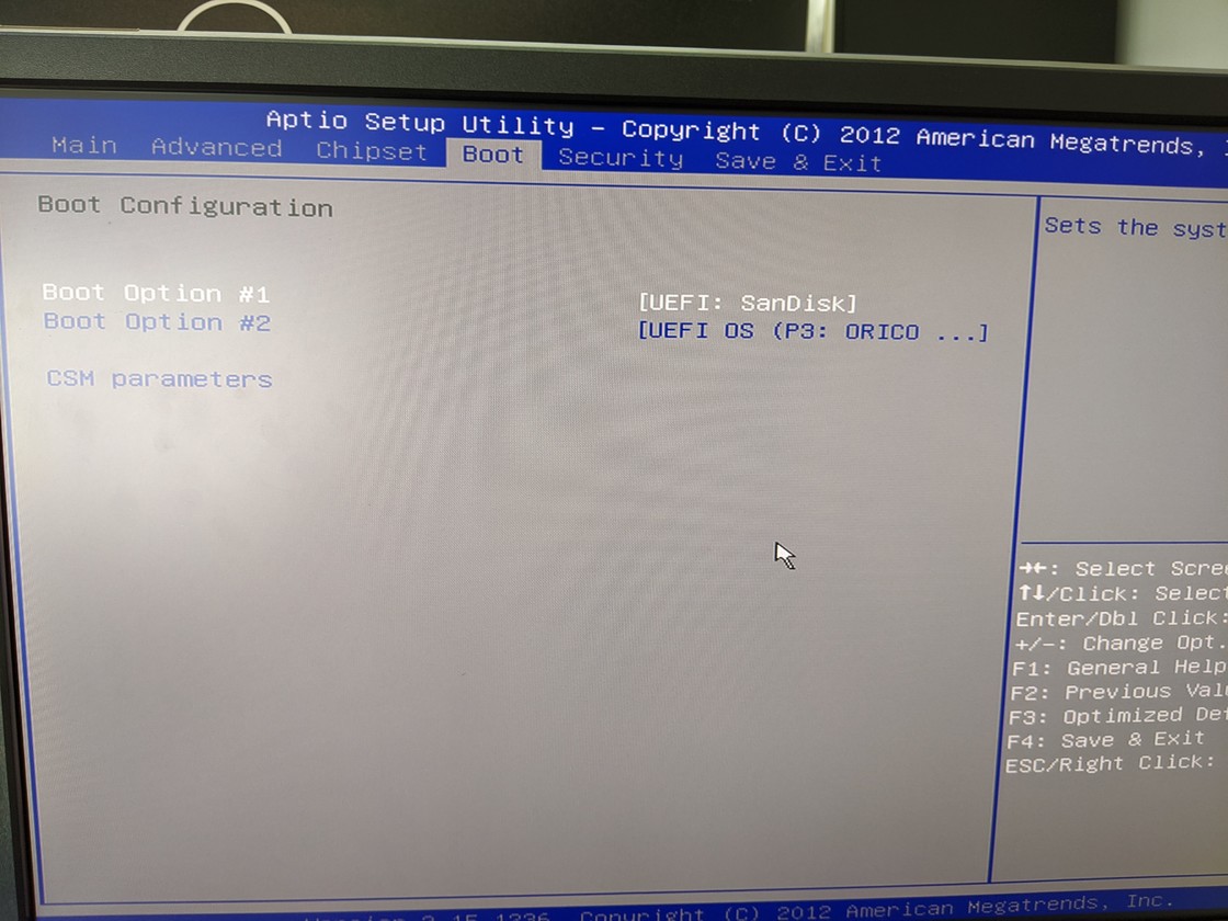 将 U 盘插入需要安装 Chrome OS 的电脑中,重新启动电脑并进入 BIOS ,在BIOS 中找到启动项目中,第一启动项选择 U 盘驱动器,然后在 CSM 中注意选择 Disable 然后保存。