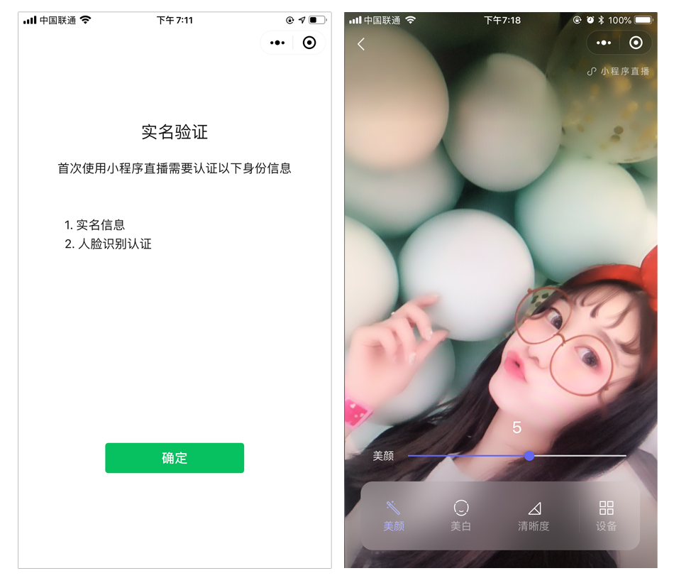 直播准备:主播仅首次登录需实名验证,直播前可对画面声音进行优化调整。