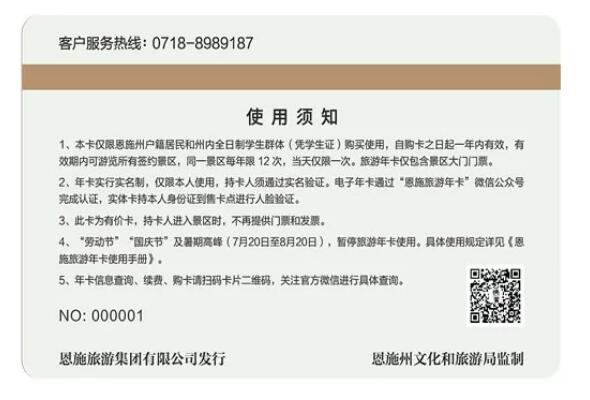 2、恩施州旅游年卡由恩施旅游集团有限公司发行,恩施州文化和旅游局监制。